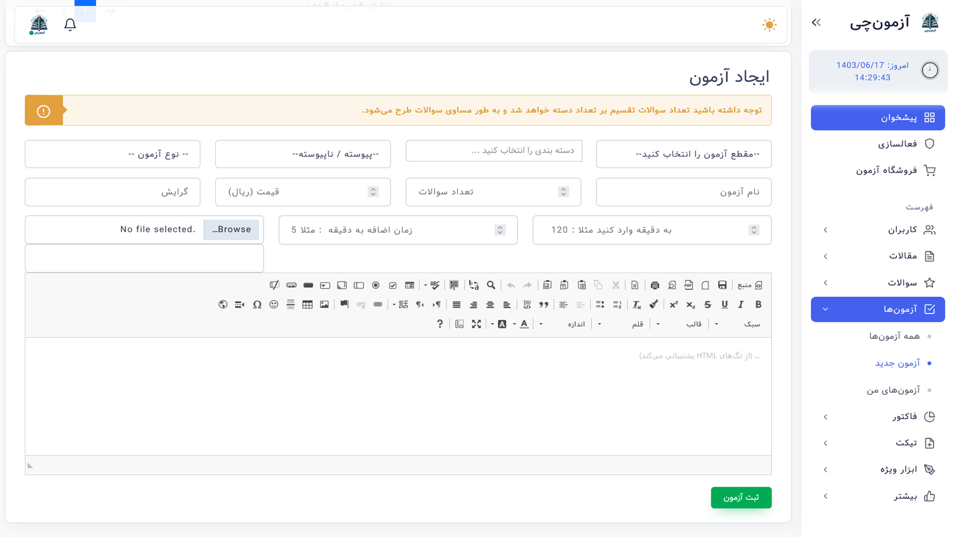 در دنیای امروز، آزمونهای آنلاین به یک ابزار ضروری برای ارزیابی دانش و مهارتها تبدیل شدهاند. یکی از ابزارهای برتر در این حوزه، آزمونچی است که با استفاده از فریمورک لاراول و زبان برنامهنویسی PHP طراحی شده است. آزمونچی یک اسکریپت آزمون ساز آنلاین است که به کاربران امکان ایجاد و مدیریت آزمونهای تستی را میدهد. این اسکریپت به طور خاص برای برگزاری آزمونهای مشابه کنکور طراحی شده است. آزمونچی با هدف تسهیل فرآیند آزمونگیری و ارزیابی دقیقتر دانشجویان و کارمندان ایجاد شد. نیاز به یک ابزار ساده و کارآمد که بتواند به سرعت و با دقت آزمونها را مدیریت کند، انگیزه اصلی تیم توسعه دهنده برای ساخت این اسکریپت بود.