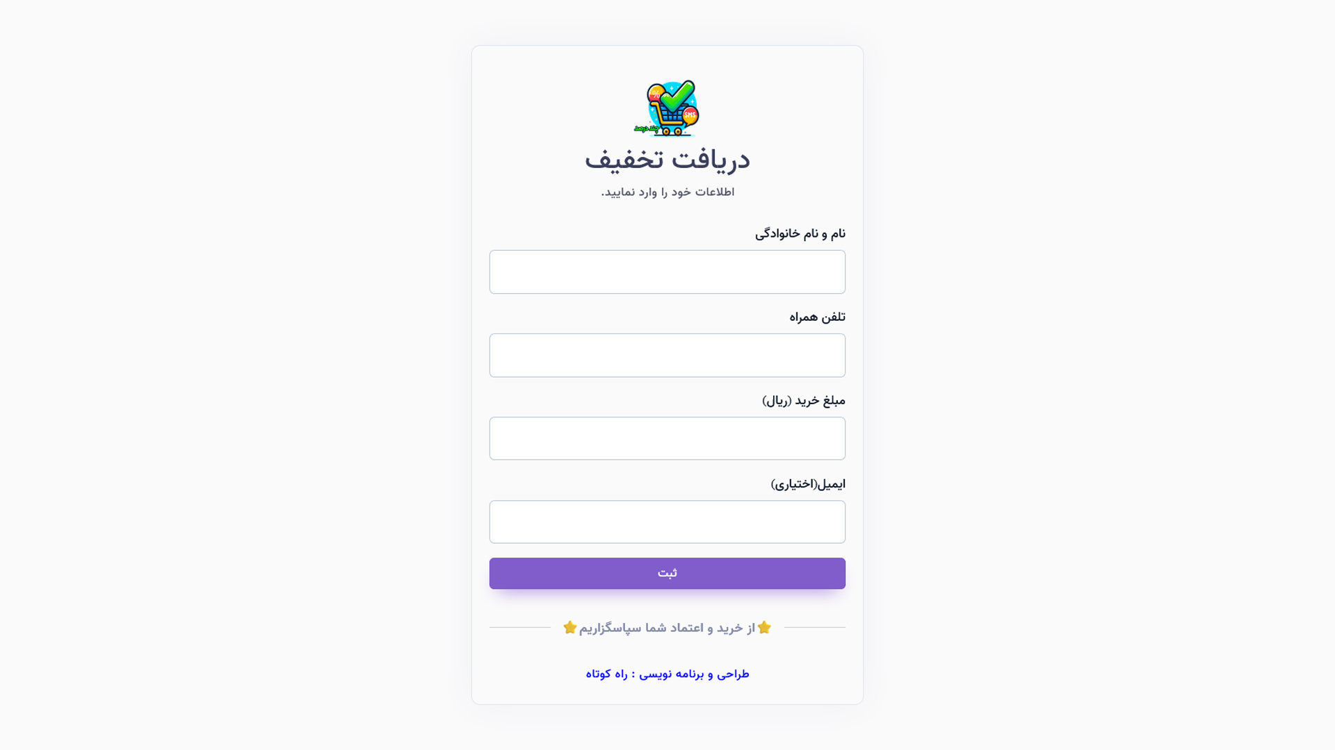 در نسخه بتا، مشتریان شما پس از هر خرید میتوانند با وارد کردن مبلغ خرید و شماره تلفن خود، از سیستم تخفیف پلکانی بهرهمند شوند. این تخفیفها به صورت هوشمند و براساس مبلغ خرید مشتری تنظیم میشوند. هر چه مبلغ خرید بیشتر باشد، تخفیف اختصاص داده شده نیز افزایش مییابد.