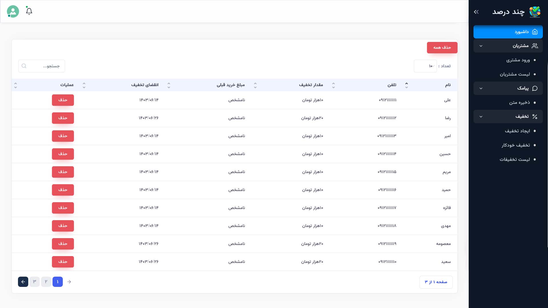 تمام اطلاعات مربوط به مشتریان، از جمله شماره تلفن و تاریخچه خریدهای آنها، به صورت